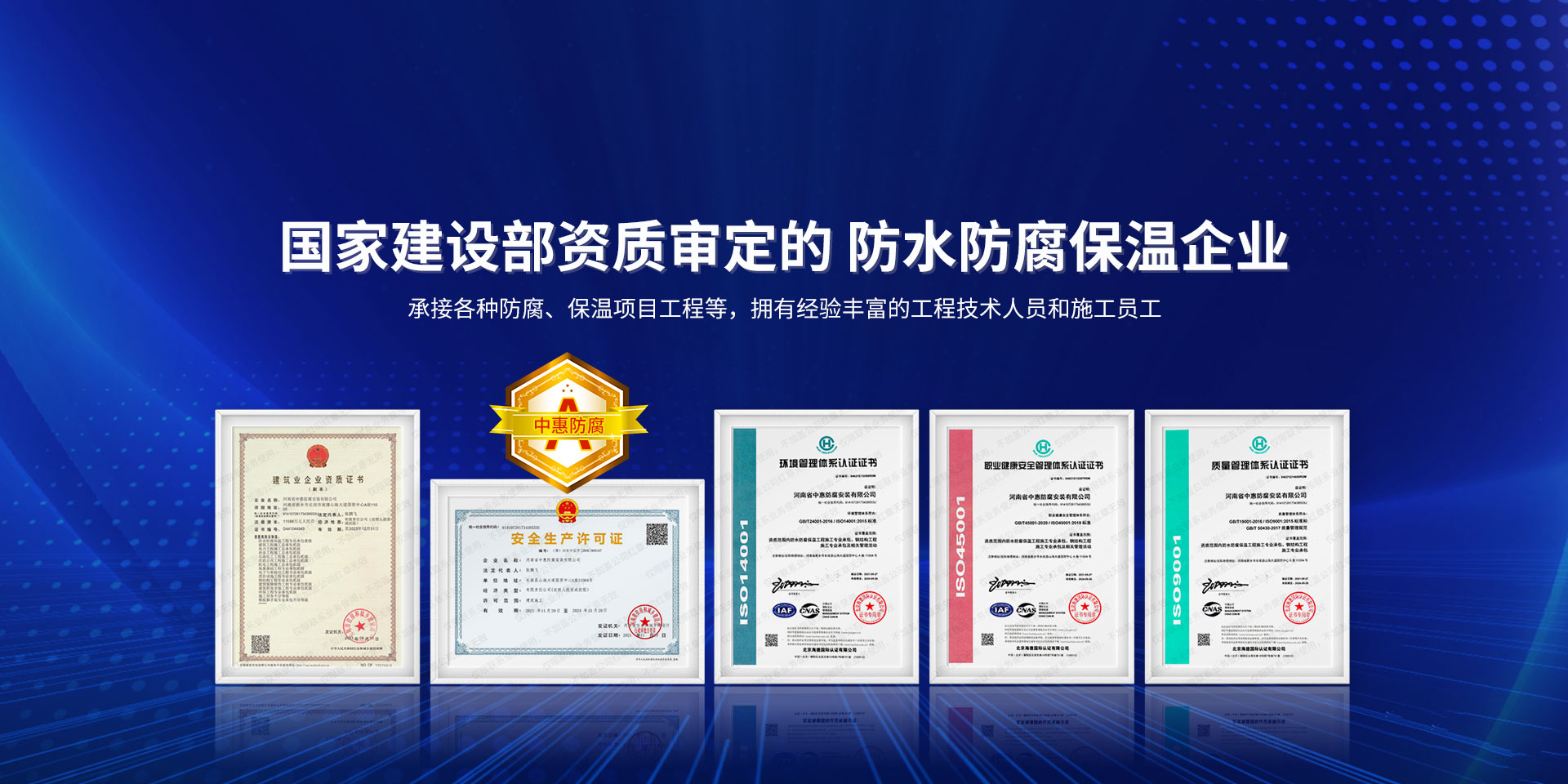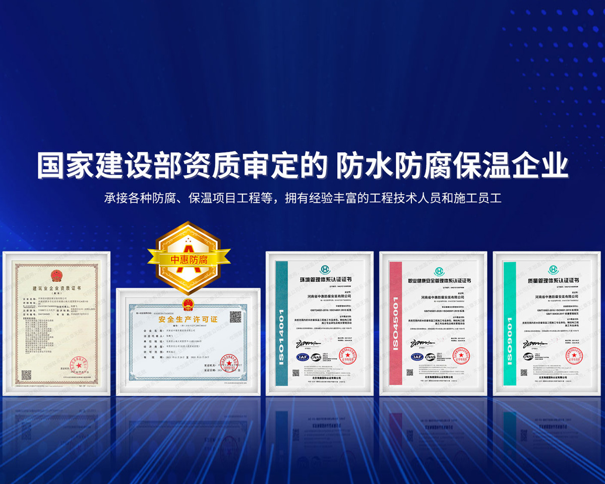 公司經營范圍:防水防腐保溫工程;消防設施工程;建筑裝修裝飾工程;建筑機電安裝工程;電力工程;建筑工程;石油化工工程;工業清洗工程;油罐清洗工程;鋼結構工程;環保工程;模板腳手架工程;電纜防火封堵、防污閃噴涂、外墻外保溫工程;各類施工勞務作業;設備維修、船舶鉚焊、涂裝;電力工程材料、建材、防水材料、防火材料、防腐保溫材料銷售,并相繼通過了GB/T19001-2008idtISO9001:2008GB/T50430-2007質量管理體系認證證書。GB/T24001-2004idtISO14001:2004環境管理體系認證證書。GB/T28001-2011idtOHSAS18001:2007職業健康安全管理體系認證證書。公司是中國防腐蝕于防護協會、中國施工企業管理協會、電力協會和中國鋼結構防水協會會員單位。 公司的經營業務涵蓋了石油、化工、電力、冶金、煤炭、船舶、國防、燃氣、水利、環保、交通運輸、航空及國防軍工和輕紡市政等行業的防腐保溫絕熱設備。鋼結構安裝、防火、防水、金屬噴鍍、聚脲噴繪、陰極保護、防滲透堵漏、玻璃鋼及各種磚版材料襯里、橡膠襯里、煙氣硫和耐酸溶劑腐蝕等工程施工。公司連續十年榮獲“省市先進施工企業”“安全生產先進單位”“重合同,守信用企業”和“AA***資質企業”的稱號。2000年被命名為市級文明單位,2002年被國家工商行政管理局命名為“重合同,守信用的企業”、被中國工業防腐蝕技術協會命名為“防腐蝕企業,能源節約及環境保護領域有豐富的經驗和***的業績。工程一次交驗合格率100%。其中攀枝花鋼鐵公司煉鐵廠四號高爐及熱風爐防腐工程、上海寶鋼公司煤氣柜防腐工程、撫順石油一廠裝置防腐項目、齊魯石化公司稀烴廠高塔防腐工程、吉林化學工業公司煉油廠油罐防腐工程、天津石化熱電廠六號爐頂棚聯絡管保溫工程、大慶油田(太倉)力神泵業工程、中國化學工程第十一建設工程、中原油田勘探局工程、中國石化銷售有限公司華北分部、魯皖輸油管道工程、貴州開磷息烽合成氨工程、陜西黃陵煤化工程、中國石油天然氣西部管道塔里木輸油工程、邯鋼集團邯寶鋼鐵公司煉鐵工程、德州供電工程、吉寶(南通)船廠工程,偃師華潤熱力工程、鄭州熱力總公司。 河南省中惠防腐安裝有限公司愿以豐富的施工經驗,***的技術,***的設備,***的管理,***的服務,竭誠為國內外廣大的用戶提供***滿意、******的工程作品。 我公司愿與國內外同仁一道,團結協作,共同推進防腐蝕行業發展! 公司地址:河南省長垣縣建設路北段360號 固定電話:0373-8866488 郵編:453400 網址:http://www_zhff_com_cn.crystaltrophy1.com